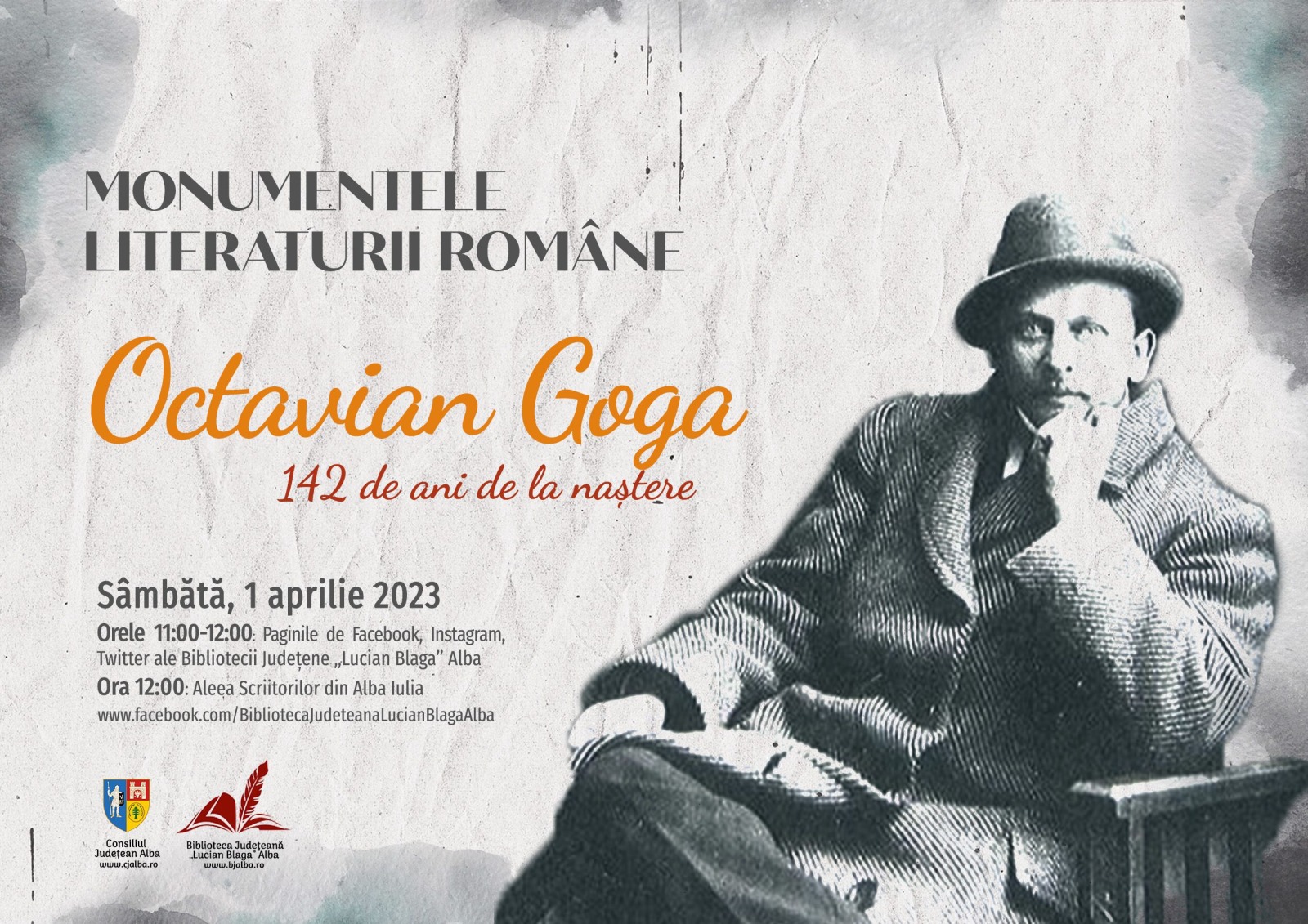 Sâmbătă, 1 aprilie 2023, la 142 de ani de la nașterea poetului Octavian Goga, Consiliul Județean Alba și Biblioteca Județeană „Lucian Blaga” Alba își propun să-l readucă în atenția publică, în calitate de scriitor, și să-l omagieze, printr-o serie de manifestări.