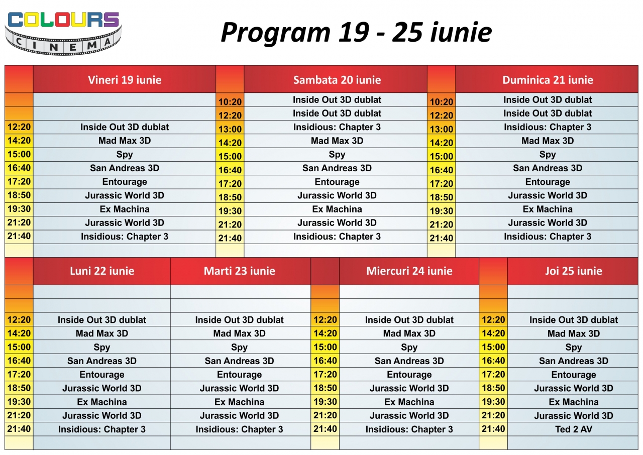 Programul la Colours Cinema în 19 – 25 Iunie