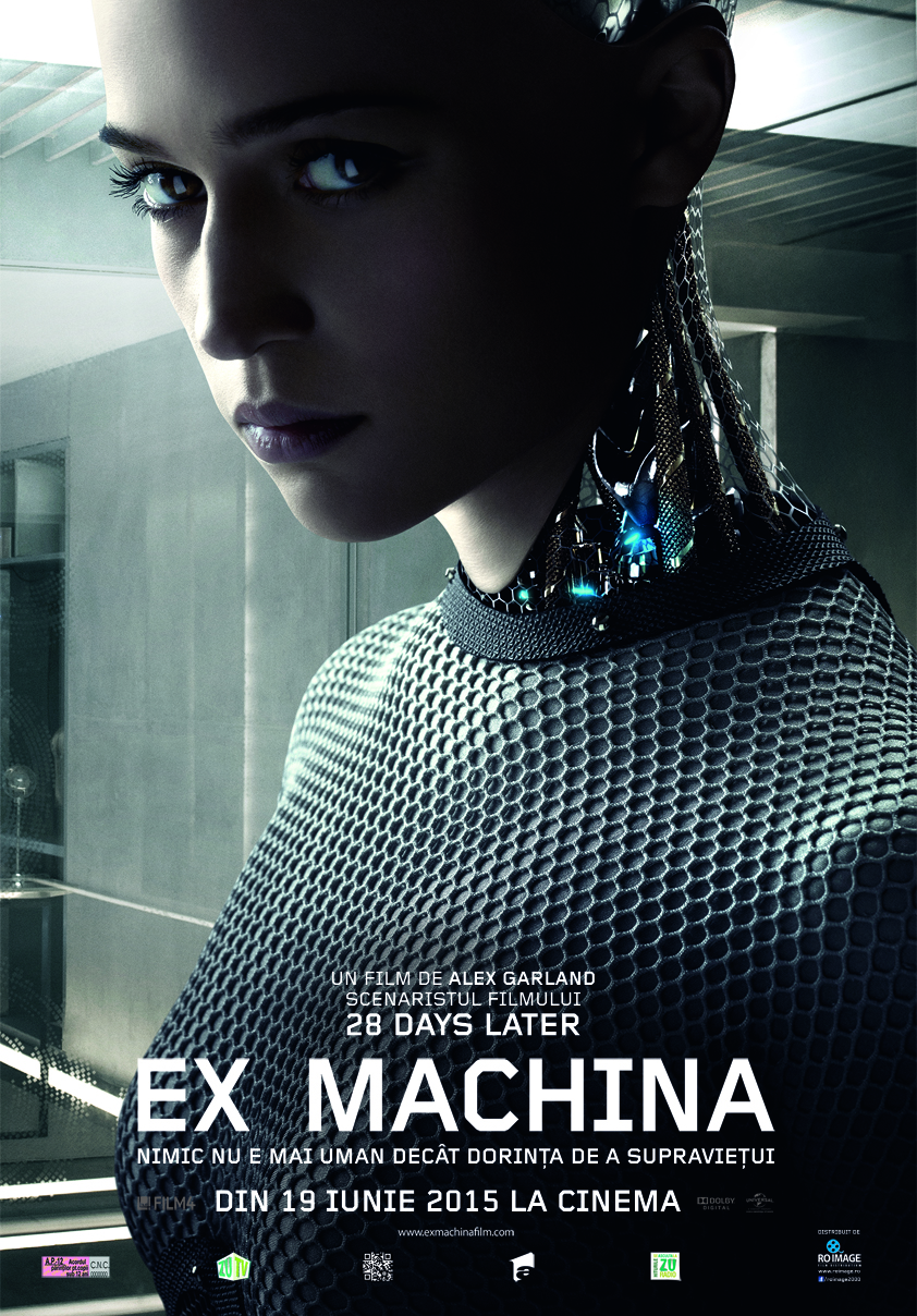 ex_machinaEX Machina : Caleb, un programator de 24 de ani, angajat al celei mai mari companii de IT, câștigă o competiție internă care avea ca premiu o săptămână alături de Nathan, șeful extrem de retras al companiei, la reședința lui izolată din munți. Experimentul pe care îl va trăi Caleb se va transforma într-o bătălie psihologică sumbră, cu întorsători de situație care îl vor pune în fața unei alegeri extrem dificilă: mașina sau omul?