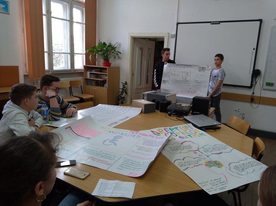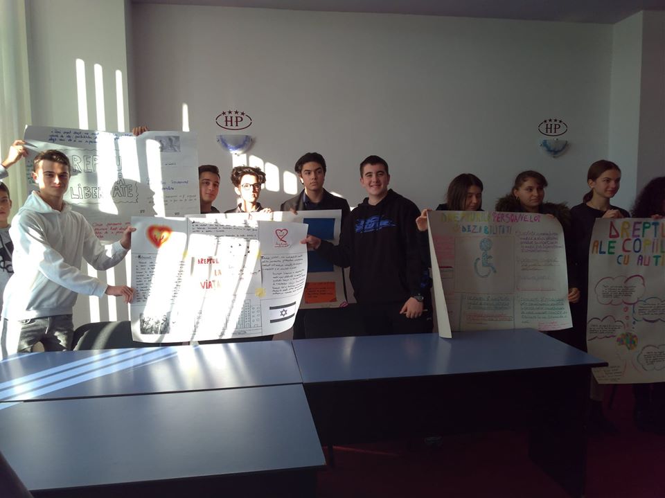 Elevii au dezbătut și au prezentat prin planșe/afișe câteva din drepturile fundamentale ale omului, se exemplu dreptul la viață, dreptul la liberă circulație, dreptul persoanelor cu dizabilități, drepturile copilului și dreptul la libertate etc. De asemenea, elevii s-au documentat și au realizat prezentări power point despre drepturile omului (coord. Furdui Amalia), iar în Centrele de Documentare și Informare din unitățile de învățământ partenere au fost organizate expoziții tematice.