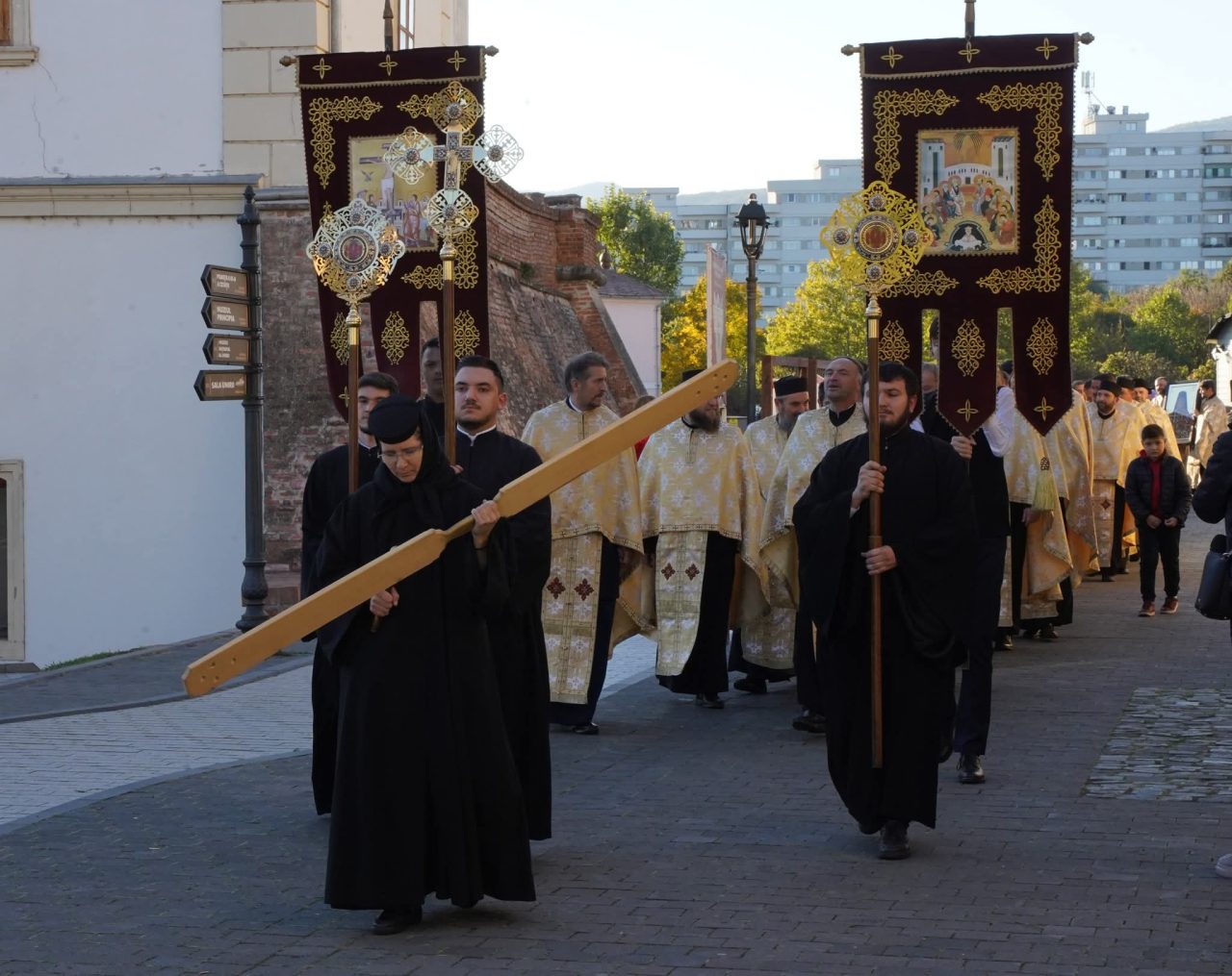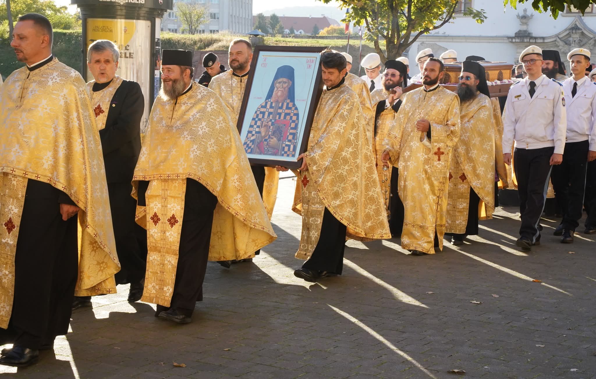 În fruntea delegației s-au aflat Stavrofora Apolinaria Barb, stareța vetrei monahale de la poalele Munților Trascăului, și Părintele Arhimandrit Antonie Kătinean, duhovnicul Mănăstirii Râmeț.În continuare, Părintele Arhiepiscop Irineu, alături de preoții și credincioșii prezenți, a luat parte la procesiunea cu sfintele moaște în jurul ansamblului Catedralei Reîntregirii.