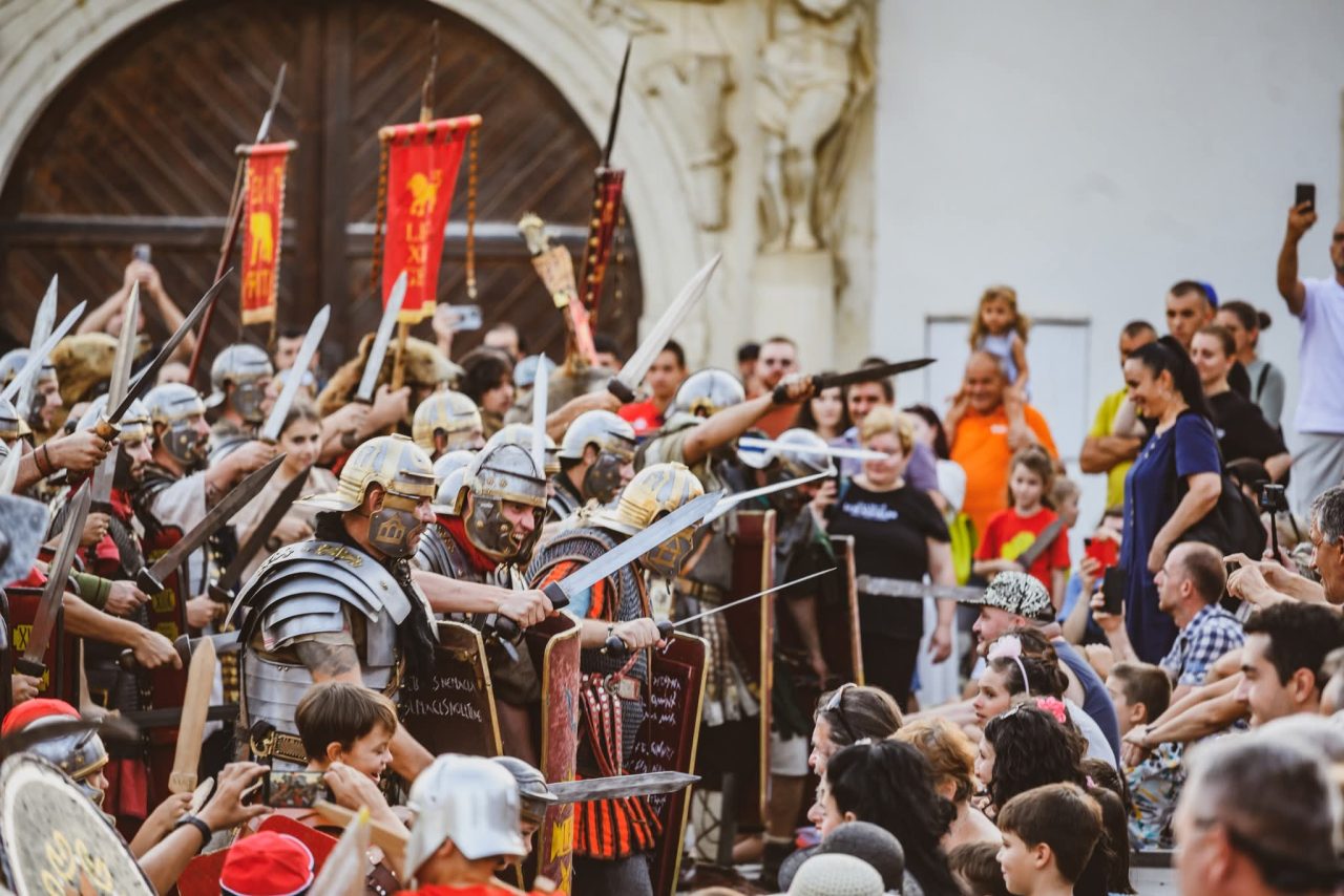 Sâmbătă:Festivalul Roman Apulum: tabără antică, demonstrații tehnică militară,târg de sclavi, lupte de gladiatori, spectacol cu foc
