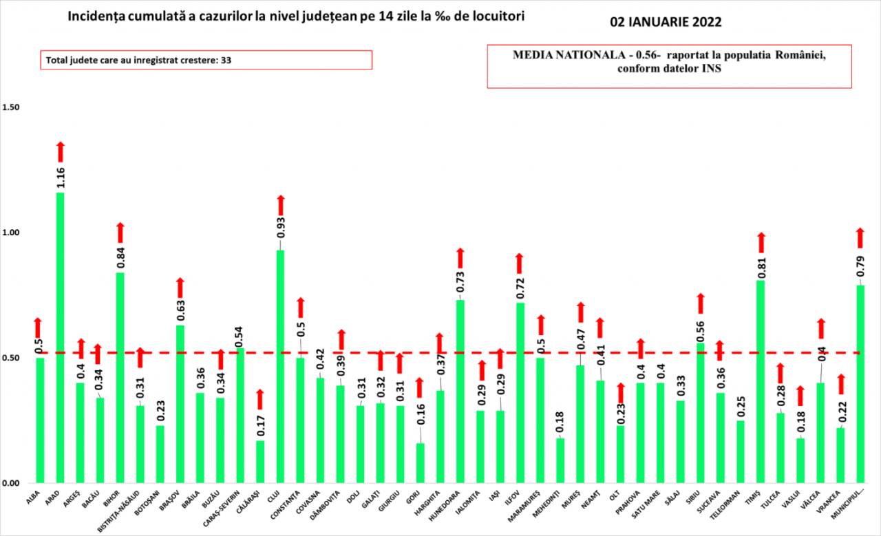 Situația la zi a cazurilor COVID-19 în România, 2 ianuarie 2022