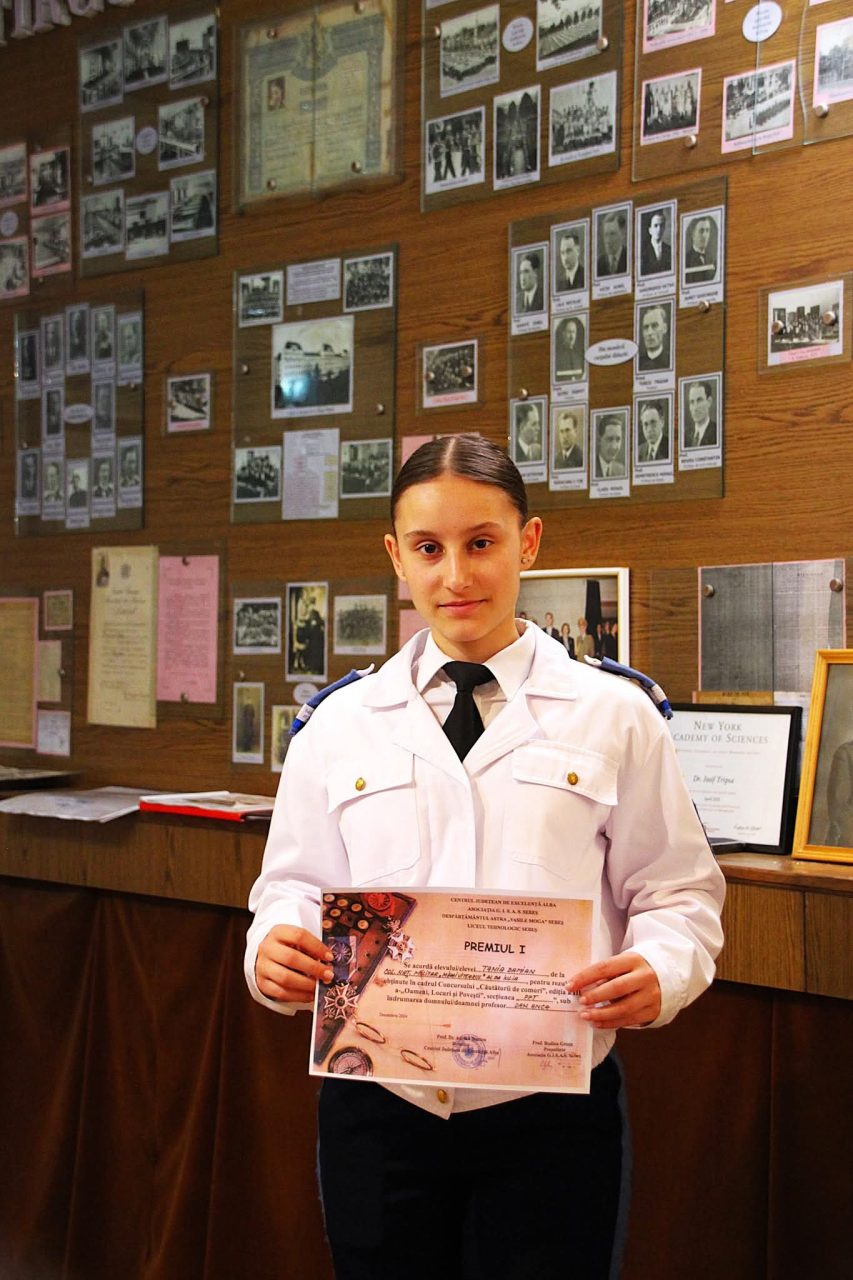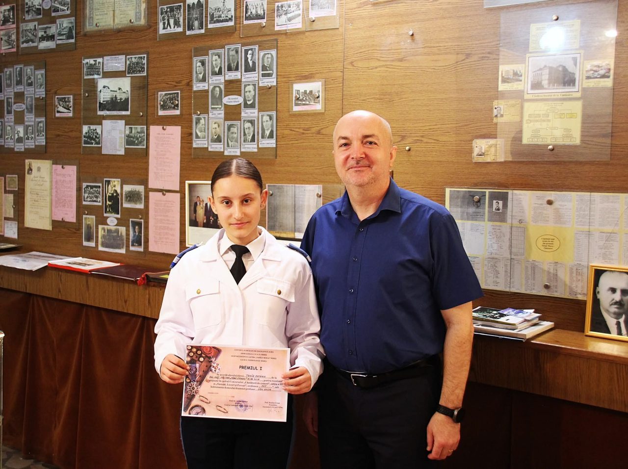 Elev sergent Tania Damian (clasa a XI-a) a obținut Premiul I la Concursul de istorie „Căutătorii de comori”, cu o lucrare bazată pe povestea de viață a străbunicului ei, care a luptat în Al Doilea Război mondial, iar în anul 1944, a fost luat prizonier.