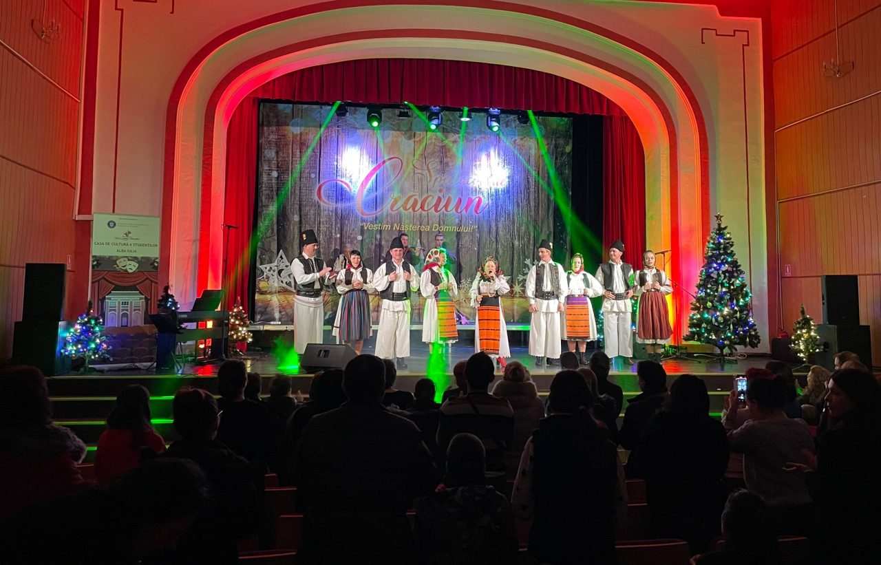 “Vestim Nașterea Domnului!”, spectacol organizat de Casa de Cultură a Studenților Alba Iulia în preajma Crăciunului, a oferit bucurie celor aproape 300 de spectatori prezenți. Artiști consacrați, dar și tineri în plină afirmare, au dat viață tradițiilor românești, într-un eveniment prezentat cu multă sensibilitate de Andreea Bogdan.