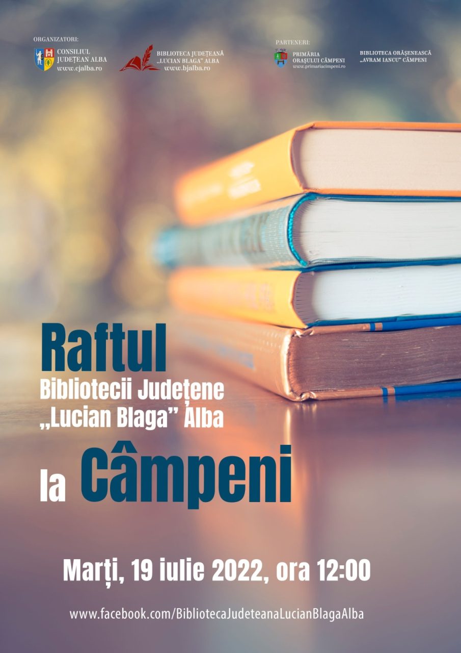 Marți, 19 iulie 2022, la ora 12.00, Consiliul Județean Alba și Biblioteca Județeană „Lucian Blaga” Alba inaugurează un nou raft în teritoriu, cel de-al XVI-lea, de această dată în orașul Câmpeni, la Biblioteca Orășenească „Avram Iancu”