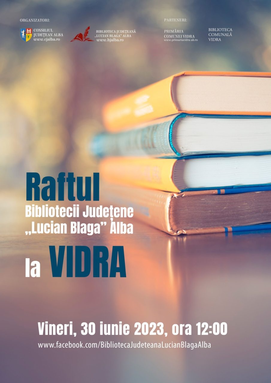 Vineri, 30 iunie 2023, la ora 12.00, Consiliul Județean Alba și Biblioteca Județeană „Lucian Blaga” Alba inaugurează un nou raft în teritoriu, al XXVII-lea, la Vidra.
