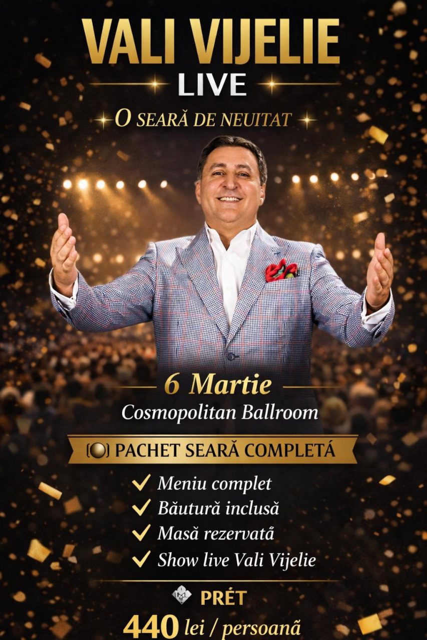 Pe 6 martie, începând cu ora 20:00, Cosmopolitan Ballroom devine locul unde distracția atinge cote maxime. Îndrăgitul artist Vali Vijelie va urca pe scenă pentru un concert live de excepție, într-un eveniment special ce promite muzică bună, atmosferă vibrantă și servicii premium pentru toți participanții.