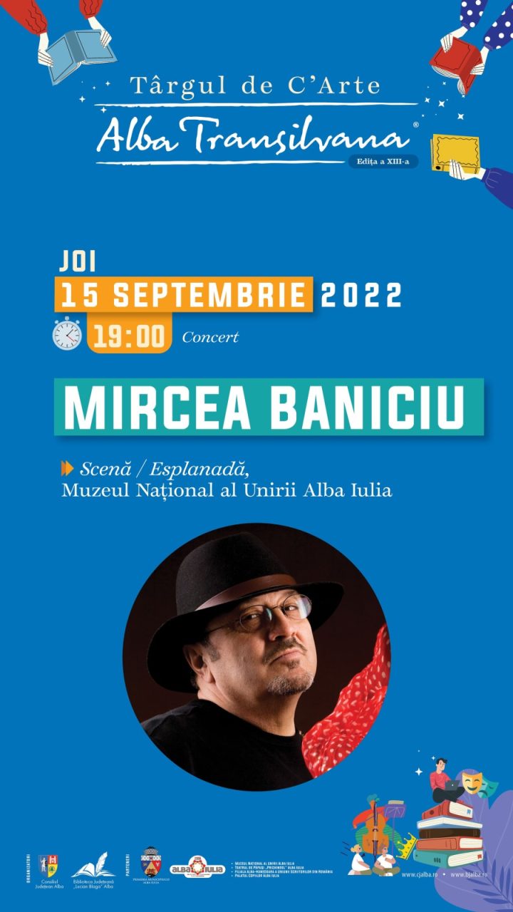 Astăzi, 15 septembrie 2022, a doua zi de Târg de C`Arte Alba Transilvana, ediția a XIII-a, la Alba Iulia! Capete de afiș: Dumitru Constantin Dulcan conferință (Viitorul omenirii din perspectivă științifică) plus lansare de carte (Inteligența materie), și Mircea Baniciu – concertpe esplanada Muzeului Național al Unirii. Vă invităm cu drag la standuri, cât și la toate evenimentele multi-art pregătite pentru dumneavoastră!