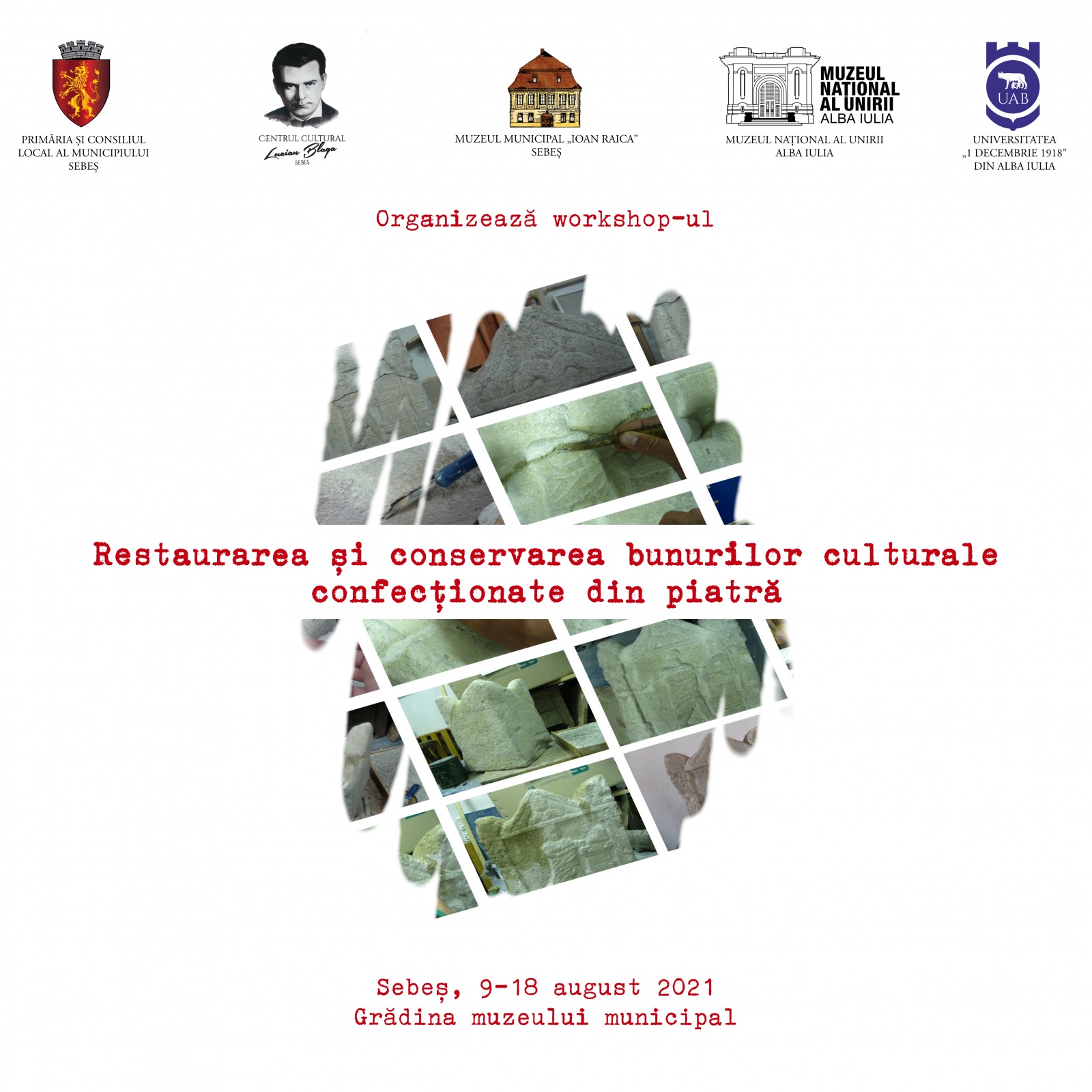 Centrul Cultural „Lucian Blaga” Sebeș, prin Muzeul Municipal „Ioan Raica”, în parteneriat cu Muzeul Național al Unirii Alba Iulia și cu Universitatea „1 Decembrie 1918″ din Alba Iulia, organizează, în perioada 9-18 august 2021, în grădina muzeului din Sebeș, prima ediție a workshop-ului „Restaurarea și conservarea bunurilor culturale confecționate din piatră”.